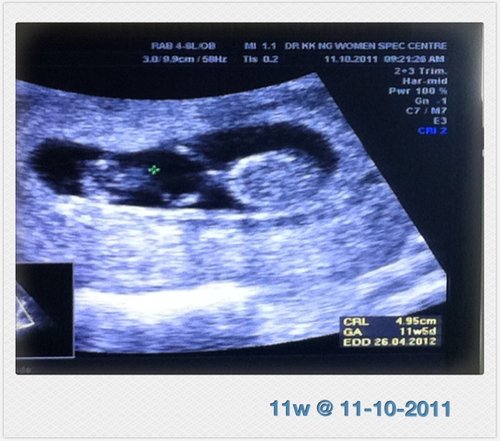 我們家小寶好可愛哦!這是我第一次看到他/她舞動手腳耶! 每次去產檢(或許時間比較早的關係,我都9點多去診所) 他/她都在睡覺說~ 可惜那天沒有拍照/錄影,是說當時的情景已經深深刻在我腦海裡了