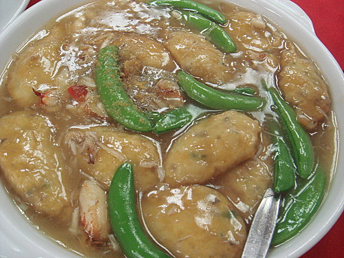 自製的豆腐, 加上蟹肉和荷蘭豆 (那綠色的菜是叫荷蘭豆吧?) - 招牌豆腐