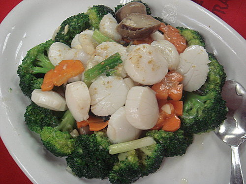 新鮮且燙得脆脆的花椰菜, 配上帶子 ~ 讚唷!