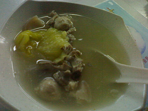 咸菜湯. 湯裡面當然不只是有咸菜, 還有肉丸, 豬肚, 豬胗, 豬肉 ... 不錯喝的, 但是偶還是覺得以前舊家那的咖啡店(金湖)檔口賣的比較好吃